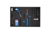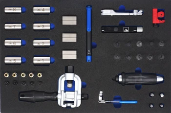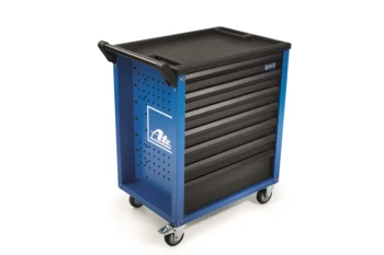 Mit dem neuen ATE Werkstattwagen sind alle wichtigen Werkzeuge für den professionellen Bremsenservice sofort zur Hand. Der Wagen besitzt 7 Schubladen, wovon fünf Schubladen mit ATE Bremsenwerkzeug bestückt sind und zwei Schubladen zur Ablage von weiteren Werkzeugen zur Verfügung stehen. Für den schnellen Einsatz sind die Werkzeuge thematisch nach Reinigung, Rückstellung, Bremsleitung bördeln und Messen/Montieren in den einzelnen Schubladen geordnet. Die ATE Werkzeuge werden durch die Weichschaumeinlagen griffbereit am Platz gehalten. Ein weiterer Vorteil der Einlagen ist, dass fehlendes Werkzeug sofort bemerkt wird. Durch die stabile Arbeitsfläche des Wagens sind kleinere Arbeiten direkt am Fahrzeug möglich.